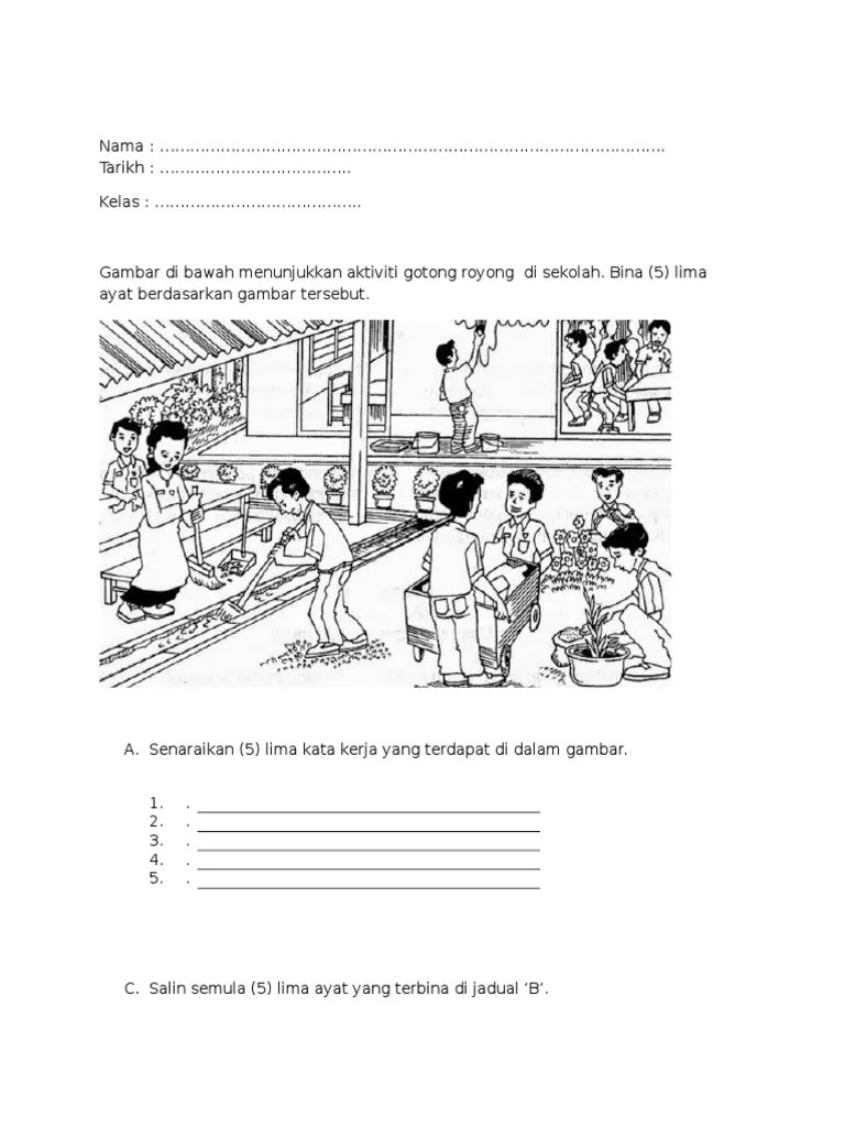 April 6, 2018 at 6:06 pm, 25 comments. 5 comments bina 5 ayat yang lengkap berdasarkan gambar aktiviti gotong royong luk zi han april 8 2018 at 6 15 pm. Kertas peperiksaan kssr bm pemahaman tahun 2. Daun pokok itu sudah luruh. Bryan dan daren mengecat dinding dengan cat . Contoh gambar bentuk muka bumi contoh folio kerja lapangan geografi tingkatan 1 . Pasal 33 uud 1945 terdiri dari 3 ayat:.